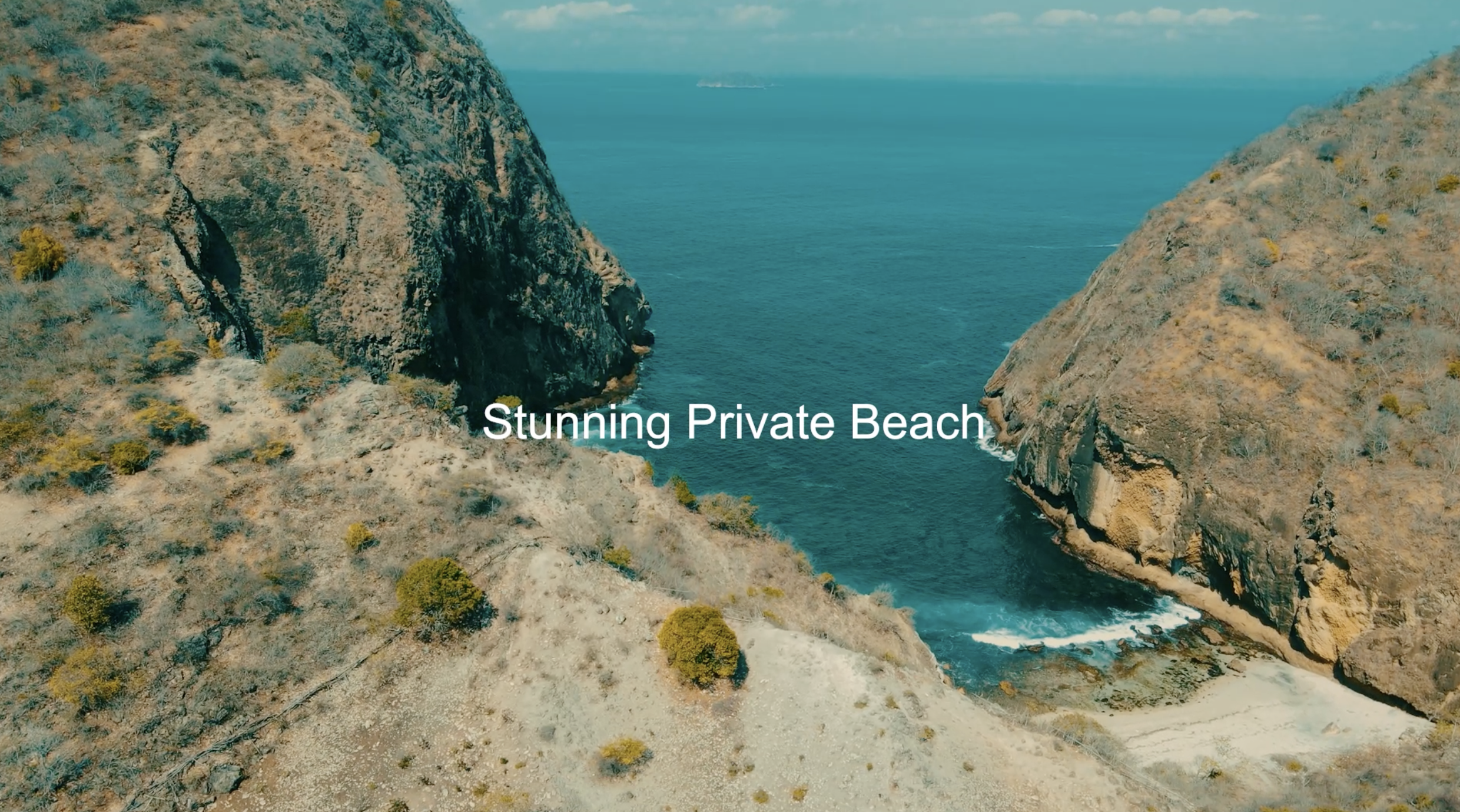 Absolute Beach Frontage Features a massive private coastal line with pristine white sand and calm turquoise waters.